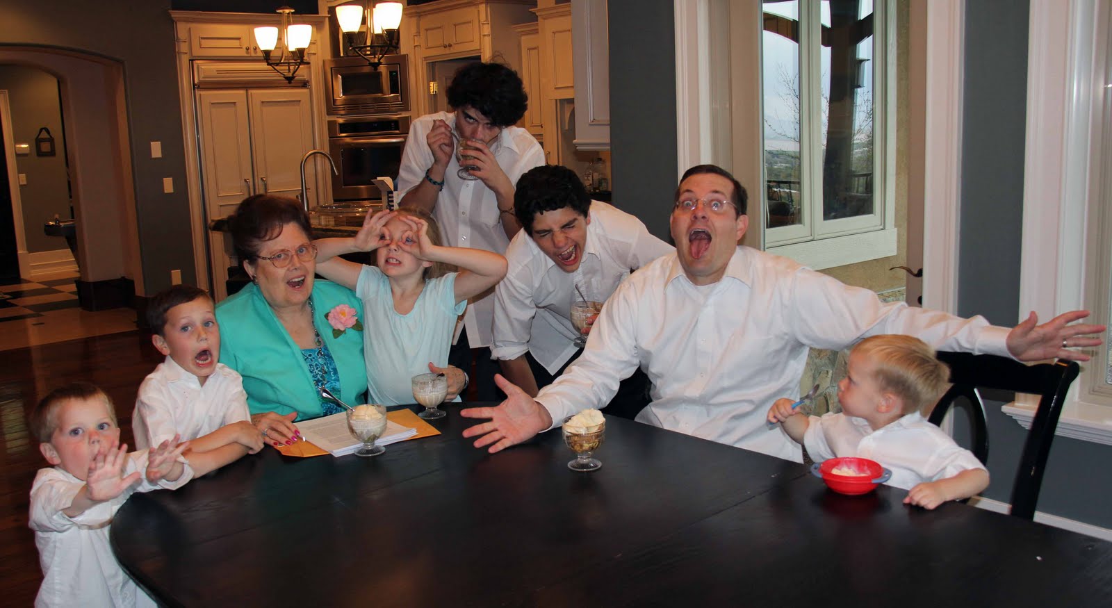 Here we all are, enjoying "T"reats with one of our neighbors, Sister Brown. Treats + teenagers = one crazy family night!