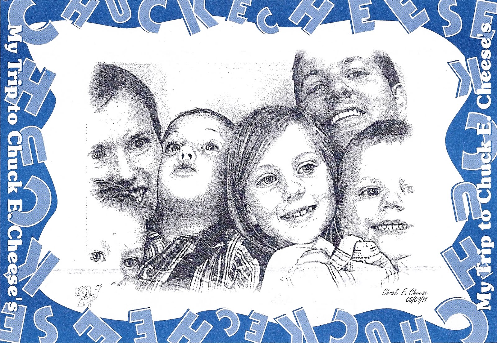 I think our family is too big for the photo booth at Chuck-E-Cheese. We all tried to squeeze in, but it didn't work too well...