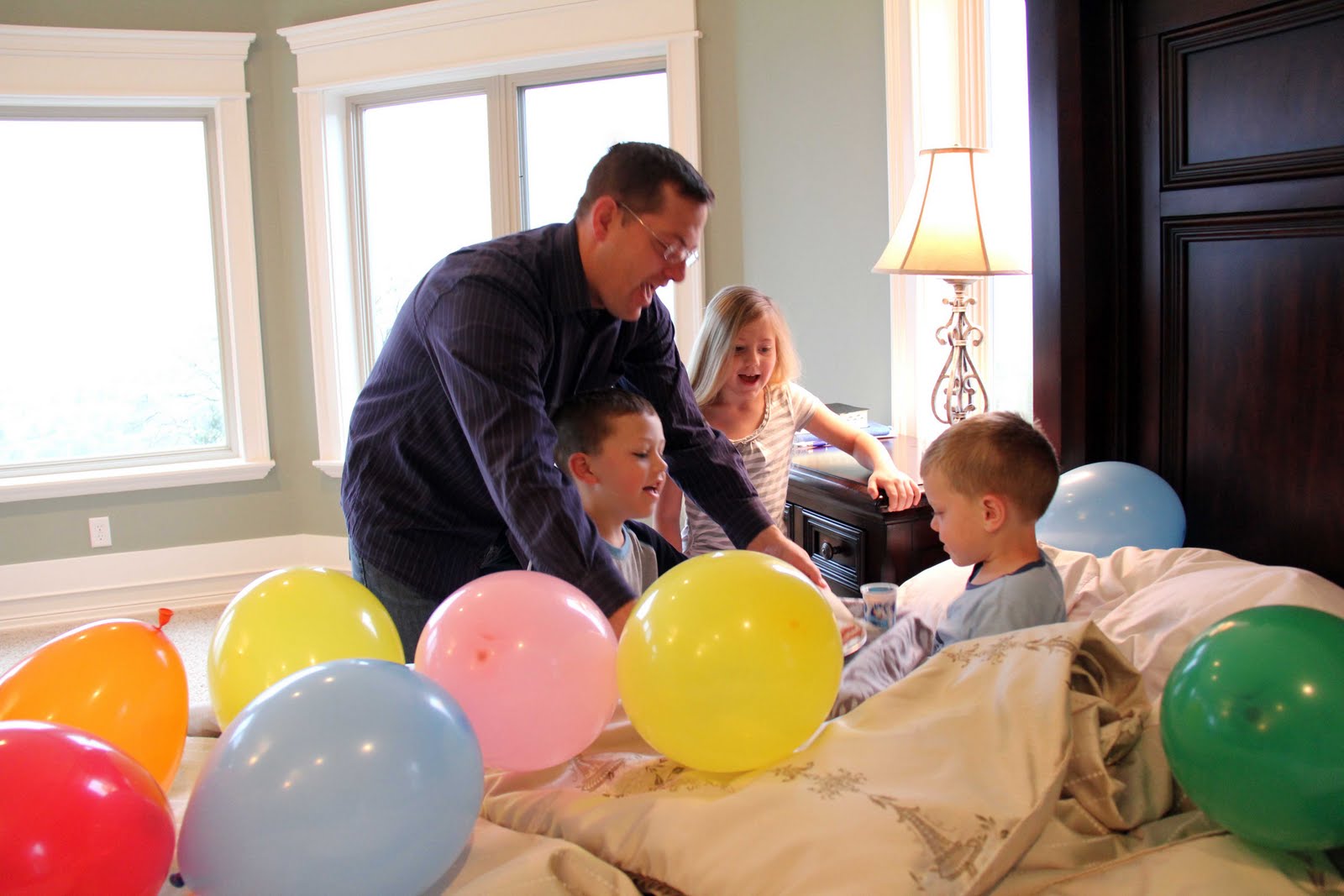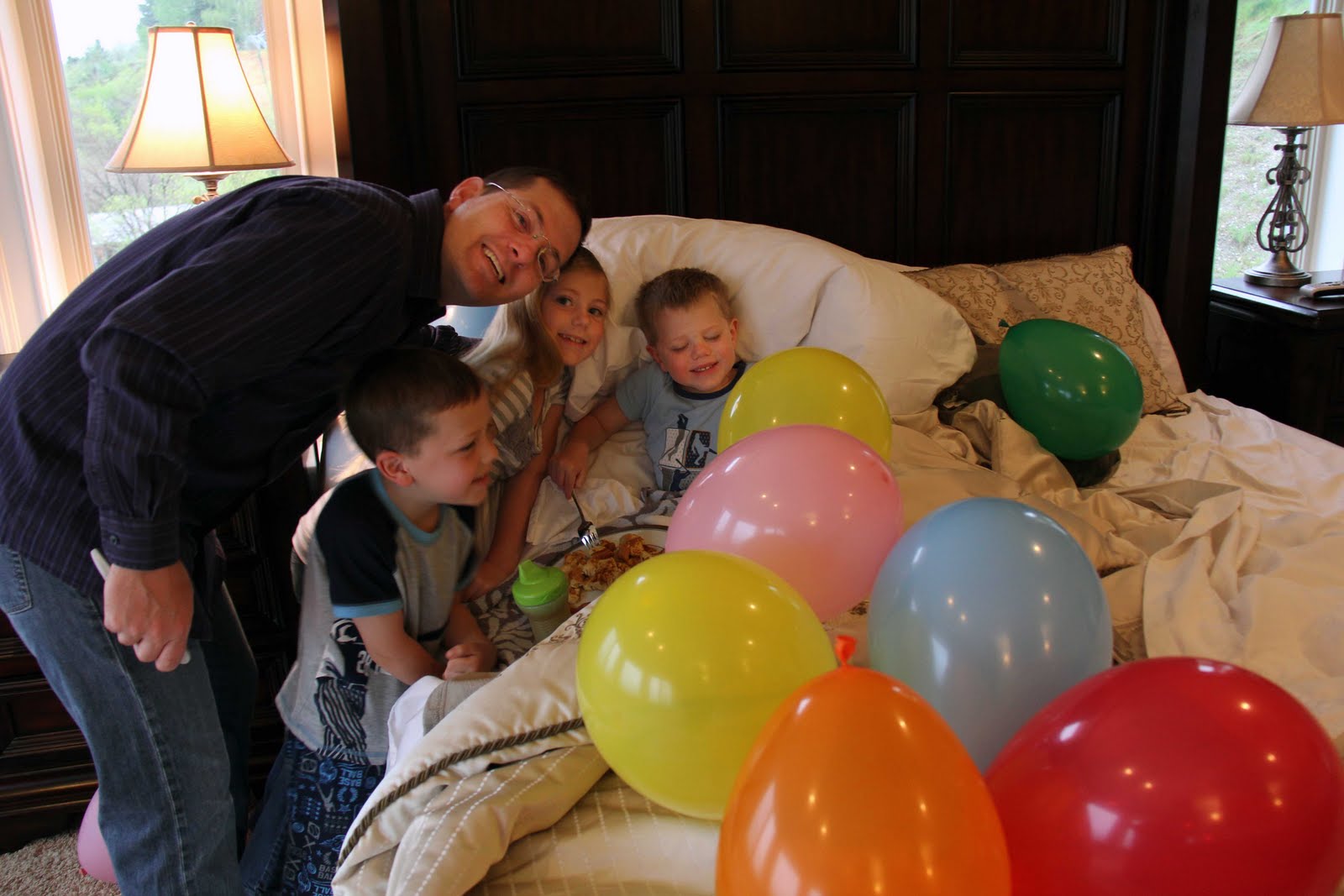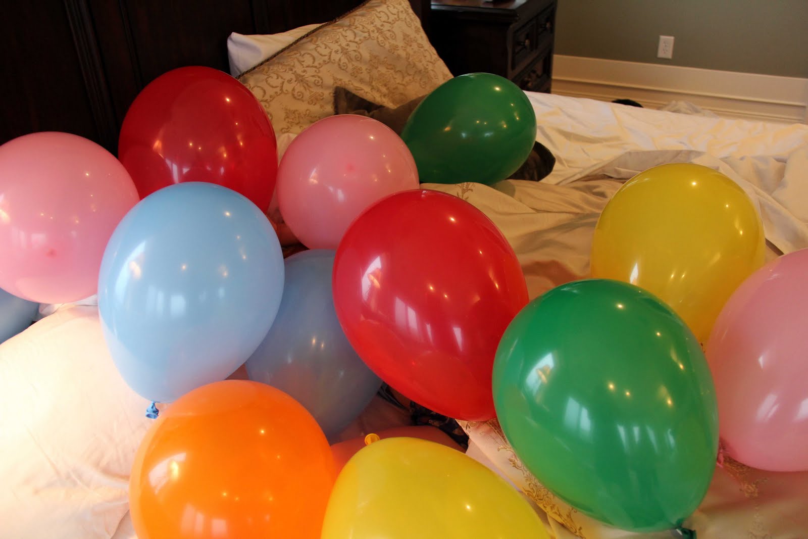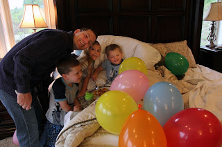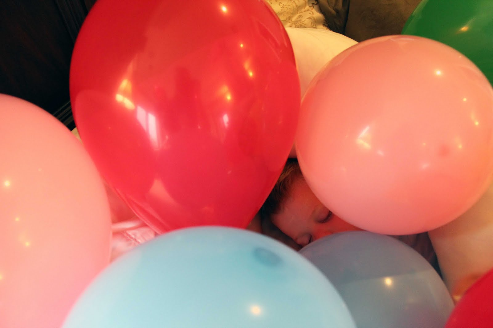 Davis woke up in my bed to find himself surrounded by balloons (a birthday tradition!). Can you see him under there? He was pretty zonked out. But we knew he'd be pumped when he woke up and realized he was getting the birthday morning treatment!