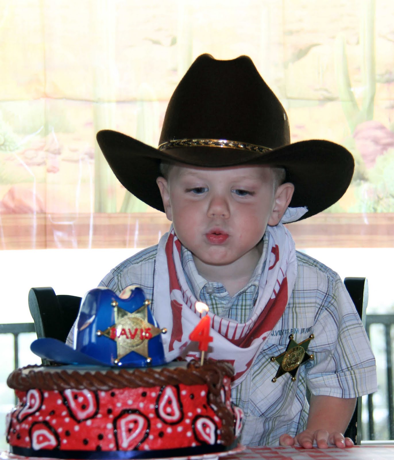 Monday was Davis's big birthday number FOUR, and he had a rootin-tootin good ol' time! Here's some super shots of the big day that had been oh-so-anxiously awaited: