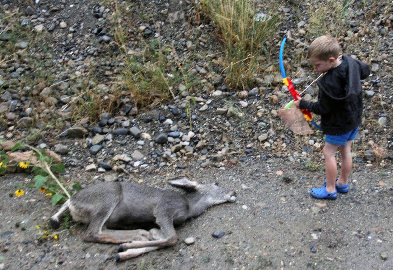 And the mighty hunter is finishing it off some more. He had to get it from every angle. |