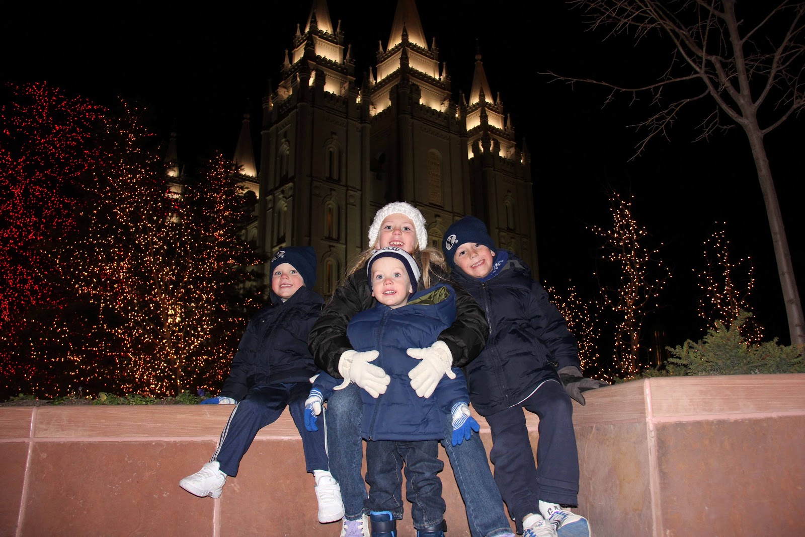 Saturday we enjoyed a BYU Basketball game at the Energy Solutions Arena in Salt Lake (Go Cougs! We actually beat Oregon, despite a rough start for BYU!) and then, since we were in the neighborhood, we made our annual visit to see the Temple Square lights. It was freezing cold, but beautiful -- and it seemed like the crowds were not a thick as they have been in previous years. Maybe that's just because we ditched our stroller this year, so we didn't have the difficultly of pushing it around! :)