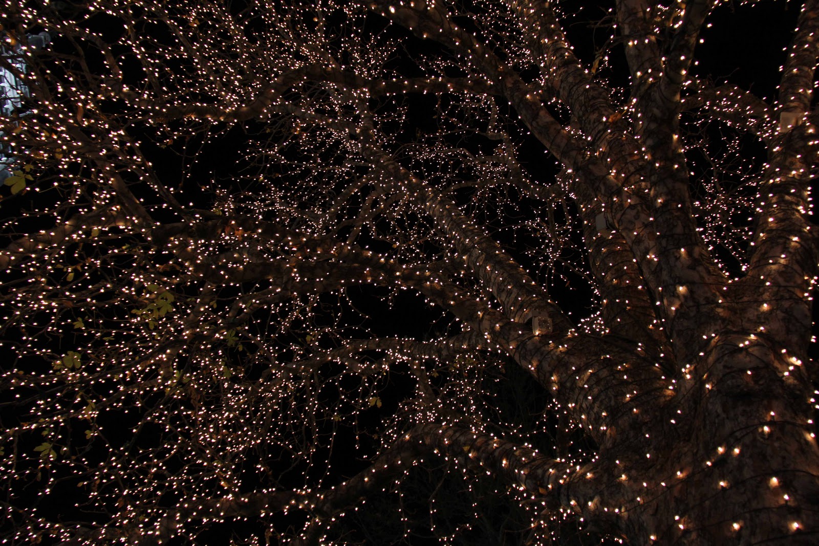 This was our favorite tree. There were tons of little trees lit up this year, but not so many big ones, like this one. I imagine that it took a full week to get the lights on this baby! So much fun to stand underneath and look upward... |