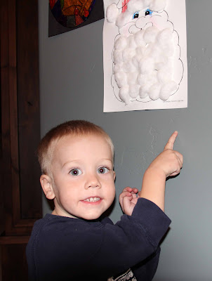 Davis brought this awesome calendar home from preschool. Each day we added a cotton ball to Santa's beard, until he had a full beard and Christmas was here! |