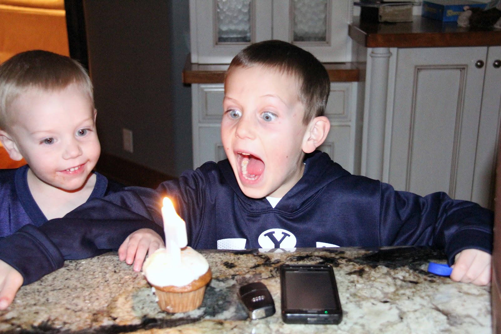 This crazy kid blows out his birthday cupcake. Carrot cake with cream cheese frosting. YUM. |